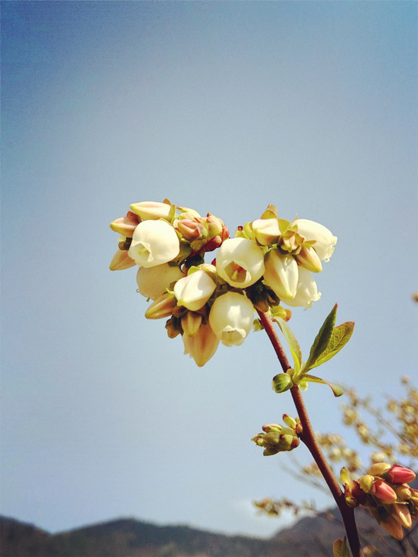 形狀:花朵為鐘形,藍(lán)莓的花為總狀花序?;ㄐ虼蟛糠謧?cè)生,有時頂生?;▎紊螂p生在葉腋間。